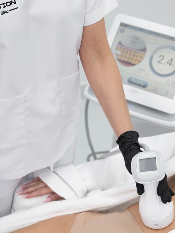 Circular Body SMAS Lifting (HiFu) is a non-surgical treatment that tightens and lifts loose skin on the body using focused ultrasound energy. It reaches deep support layers (SMAS and deep dermis) that most creams and surface devices can’t target. At Evolution Aesthetics we use Ulfit technology and offer focused protocols for both normal and large body areas. The method fits people who notice laxity on the abdomen, arms, thighs, buttocks, knees, or armpits and want firmer contours without downtime. Results build gradually over weeks as your body produces new collagen, with improvements that can hold for a year or longer.