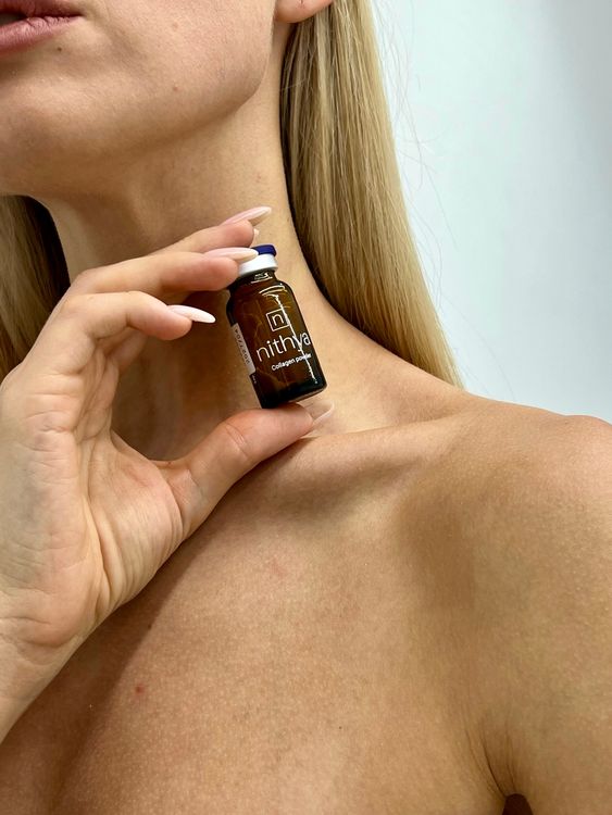 Collagen Generator is a biostimulatory injectable that places medical‑grade Type I collagen into the superficial dermis to encourage your skin to make more of its own structural proteins. At our clinic we use Collagen Treatment Nithya when indicated. Nithya is a sterile, freeze‑dried Type I collagen that is reconstituted before treatment and delivered with very fine needles or a micro‑cannula using micro‑papules or linear threading. The exogenous collagen acts as a scaffold and a biochemical signal: dermal fibroblasts interact with the matrix, migrate, and produce new Type I and III collagen and supporting extracellular matrix. Over weeks, your body remodels the area, gradually replacing the placed collagen with newly formed native collagen. This process improves firmness, elasticity, fine lines, and the look of mild acne scars, with incremental improvement across 6–12 weeks after each session.Contraindications