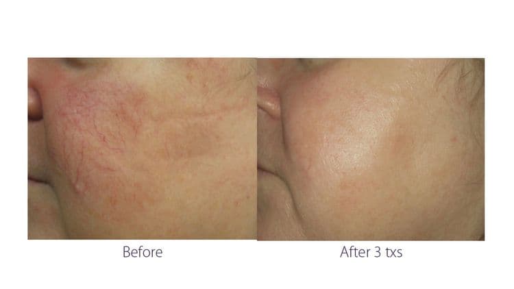 Many clients see reduced flushing and fewer obvious vessels after the initial treatments.