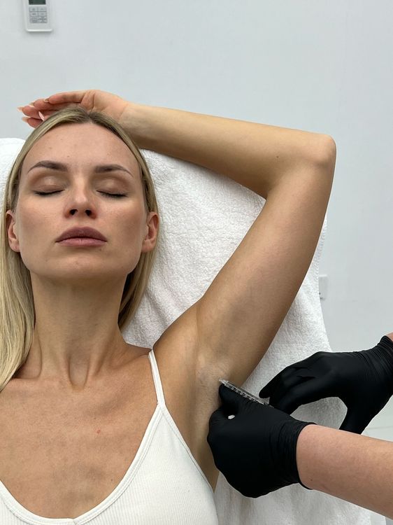 Hyperhidrosis reduction helps people who sweat too much in the underarms, palms, soles, or scalp. We use small injections of botulinum toxin (Botox, Dysport, or Kseomine) to calm the overactive sweat glands in the exact spots that bother you. The session is quick and most people return to normal plans right away. Results usually start within a week and can last for several months. At Evolution Aesthetics, we also offer botulinum toxin for platismal bands in the neck, which can be planned together if needed. Book this treatment if antiperspirants are not enough and you want dryer, fresher skin.
