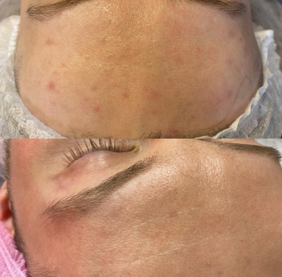 Many people notice clearer tone and reduced oil or redness right after the first session.