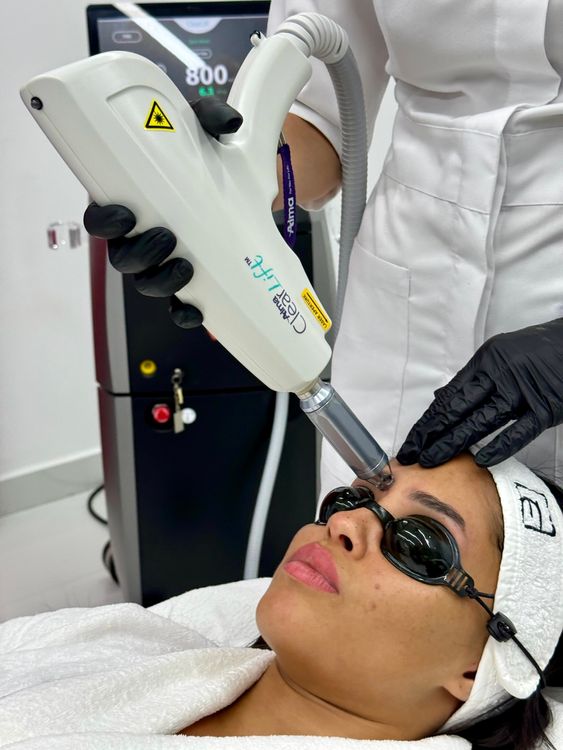 The Q-switched Nd:YAG laser delivers extremely brief, high‑peak‑power pulses (in the nanosecond range). This creates a photoacoustic effect: ink granules absorb the energy and fracture into microscopic particles without extensive heat diffusion into surrounding tissue. Black and dark blue inks absorb 1064 nm light deeply, while the frequency‑doubled 532 nm wavelength efficiently targets red and orange pigments closer to the surface. The body’s macrophages then carry away the fragmented ink through the lymphatic system over time. On the Alma Harmony XL PRO platform, we adjust spot size, fluence, and repetition rate to suit the tattoo’s colour, depth, and your skin type, aiming for effective clearance with minimal collateral impact. Why Q-switched Nd:YAG? Laser tattoo removal has been used for many years, and modern research shows that the most effective way to remove pigment is with a powerful pulse delivered in a very short time—the Q-switched Nd:YAG laser. During the procedure, pigment is disrupted before surrounding tissue can heat up. Complications are uncommon, and when treatment parameters and aftercare are followed, the skin typically heals without scarring.Contraindications